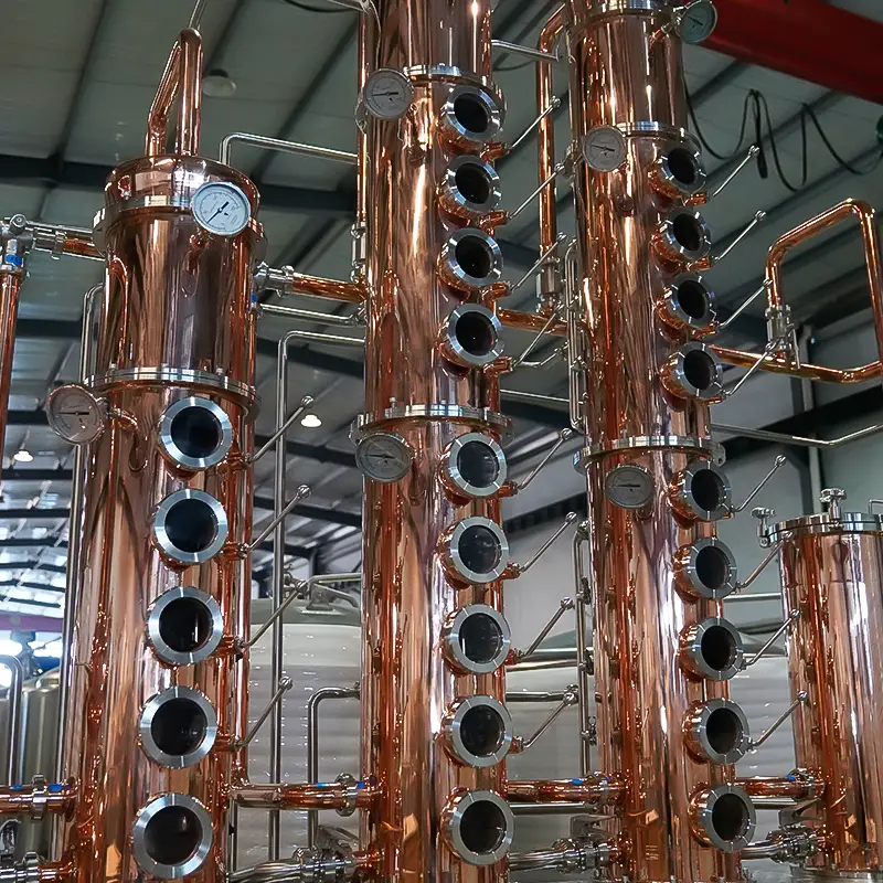 智造醇烈 从配方研发到规模化生产,您的酿造痛点,我们都有答案 让全球烈酒工艺在中国酿造落地 威士忌的橡木桶陈、伏特加的极致纯净、金酒的草本萃取、白兰地的壶式蒸馏、朗姆酒的糖蜜发酵——这些世界烈酒工艺正加速融入中国本土酿造体系。与此同时,中国传统白酒的大曲固态发酵与日韩烧酒的连续蒸馏技术也在迭代升级,形成多元并存的烈酒产业新生态。作为酒业全产业链装备与整厂方案服务商,我们以技术赋能全球烈酒在中国本土化酿造,从工艺设计到设备交付的完整支撑,让世界风味与中国酿造深度共鸣。 威士忌蒸馏厂 白兰地蒸馏厂 伏特加蒸馏厂 朗姆酒蒸馏厂 金酒蒸馏厂 白酒蒸馏厂 烧酒蒸馏厂 蒸馏厂整厂规划设计 小而精的空间设计:在保证工艺合理的情况下尽最大可能节省占地;空间规划注重细节,做到处处精致;通过个性化设计展现品牌故事,打造体验式酿造人性化的装备创新:既兼顾工艺标准化管理需求,又要有更多的便于操作和管理的设计,更须体现酿造者个性化意图,细节处实现更好的人机互动 壶式蒸馏器 壶式蒸馏器可作为对发酵液粗蒸的气提蒸馏器,也可以作为烈酒蒸馏器蒸 馏出高达80%酒精度的烈酒(多次蒸馏后)。 天泰壶式蒸馏器采用纯铜铜或食品级不锈钢材质为内胆,精准适配不同酒 类酿造需求——铜质催化硫化物吸附并促进酯类形成,赋予威士忌、白兰 地柔顺口感与花果香气;不锈钢材质则确保伏特加等酒体的极致纯净。经 典洋葱型壶体与可调式天鹅颈结构优化蒸汽回流路径。智能温控系统实时 监测蒸馏曲线,自动分离酒头、截取精华酒心并回收风味酒尾,保障品质 始终如一。 塔式蒸馏器 连续塔式蒸馏器也成为科菲蒸馏器,是一种较为现代化的烈酒蒸馏方法。天泰塔式蒸馏器常用于工业和大规模烈酒生产,最高酒精度可达95%ABV。塔式蒸馏器不仅可以用于蒸馏伏特加或中性酒精,也可以用于蒸馏金酒、龙舌兰、朗姆酒和威士忌等带有独特风味的烈酒。天泰塔式蒸馏器可设计为两种类型,分别适用于蒸馏经过滤的发酵酒液和含有固体颗粒的发酵酒液。我们的工程团队将根据您所需的产量和酒精度确定塔盘的直径和泡罩的间隙等。 混合式蒸馏器 天泰以突破性设计融合壶式蒸馏与塔式蒸馏技术,兼具传统风味的细腻把 控与现代生产的效率优势,成为酿造复杂风味烈酒与高纯度酒精的理想选 择。通过深度工艺协作与技术支持,可依据您的酒厂需求定制多塔系统或 金篮配置,在铜质接触段催化酒体柔化与香气演化,或通过不锈钢精馏模 块实现精准杂质分离,适配威士忌、金酒、中性酒精等多品类精细化生 产。我们的自动控制系统实时调节温度、回流比与馏分截取,确保风味一 致性;热能回收与多级冷凝技术大幅降低能耗,满足环保与成本双重要 求。无论您是追求小批量风味创新的精品酒厂,还是需要大规模高效生产 的工业级客户,天泰混合式蒸馏器均可提供定制化解决方案。